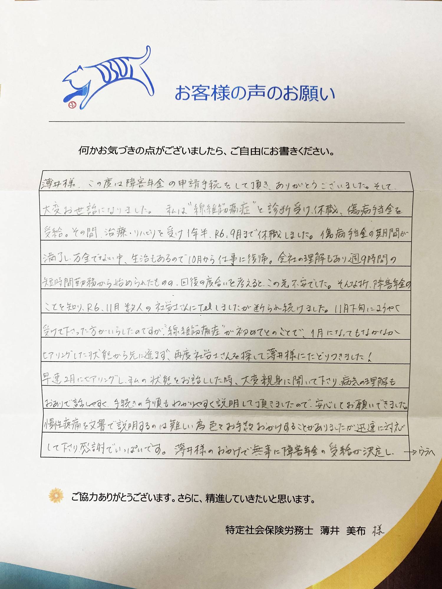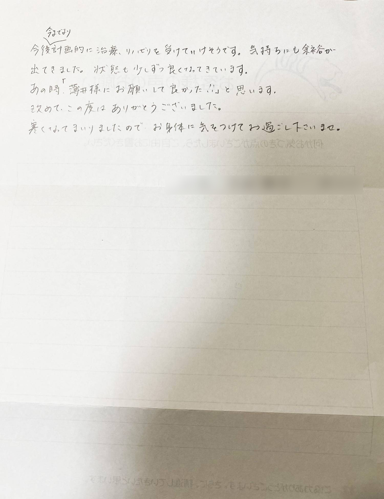 お客様の声を頂きました(鶴ヶ島市)